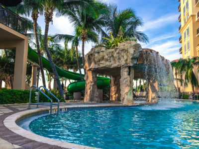 The Infinity Pool is an outdoor heated pool with towels provided. The adult-only infinity pool has an ample supply of lounge chairs to tan and relax on during your visit to the Palm Beach Singer Island Luxury Suites.